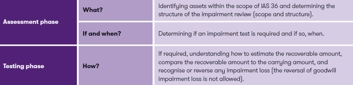 We use the phrase ‘impairment review’ to encompass both the assessment and testing phase. In the assessment phase management: