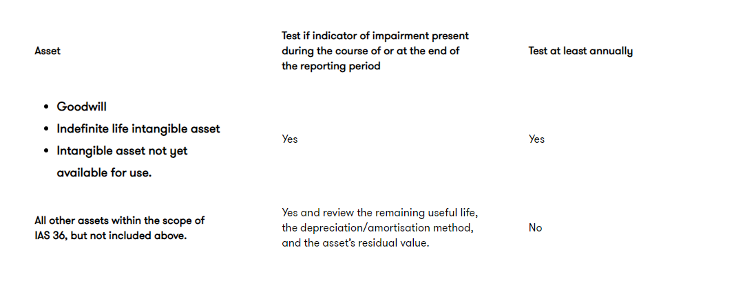 This article explains if and when a detailed impairment test as set out in IAS 36 is required. The guidance prescribes different requirements for goodwill and indefinite life intangible assets (including those not ready for use) when compared to all other assets. As such, this article will cover Step 3 in the impairment review which is to determine if and when to test for impairment is needed.