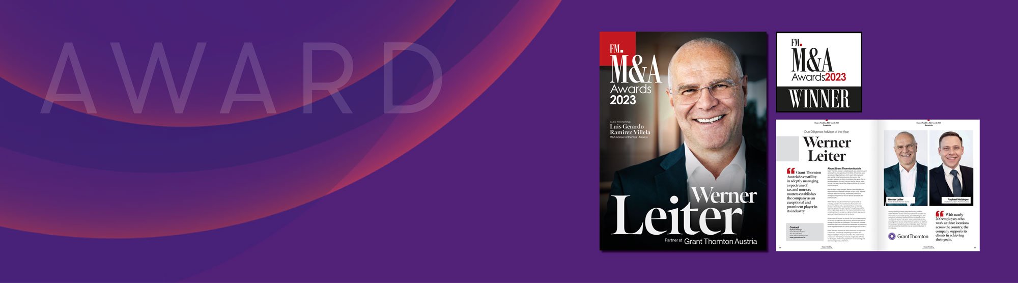 We are delighted that Werner Leiter, Partner at Grant Thornton Austria, has won the title "Due Diligence Advisor of the Year" 2023.