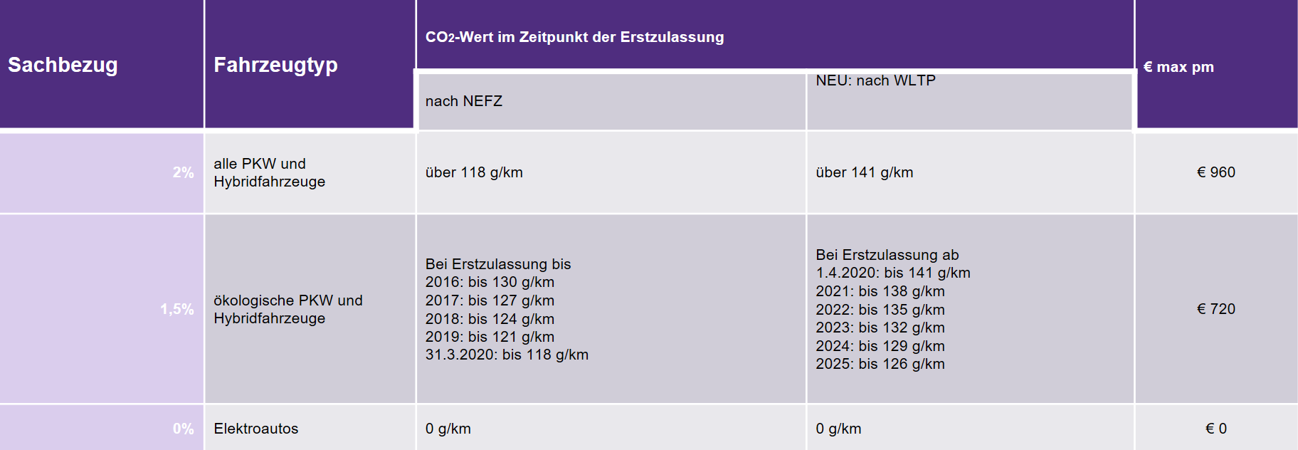- Für Erstzulassungen von PKW bis zum 31.3.2020 gelten weiterhin die Werte aus dem Jahr 2019. Für Anschaffungen ab 1.1.2020 ist also in diesen Fällen weiterhin die Grenze von 118 g/km anzuwenden.