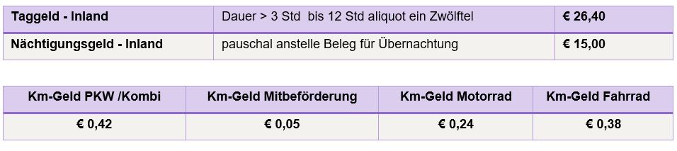 Die Sätze für Tages- und Nächtigungsdiäten im Inland sind unverändert geblieben. Hier zur Erinnerung: