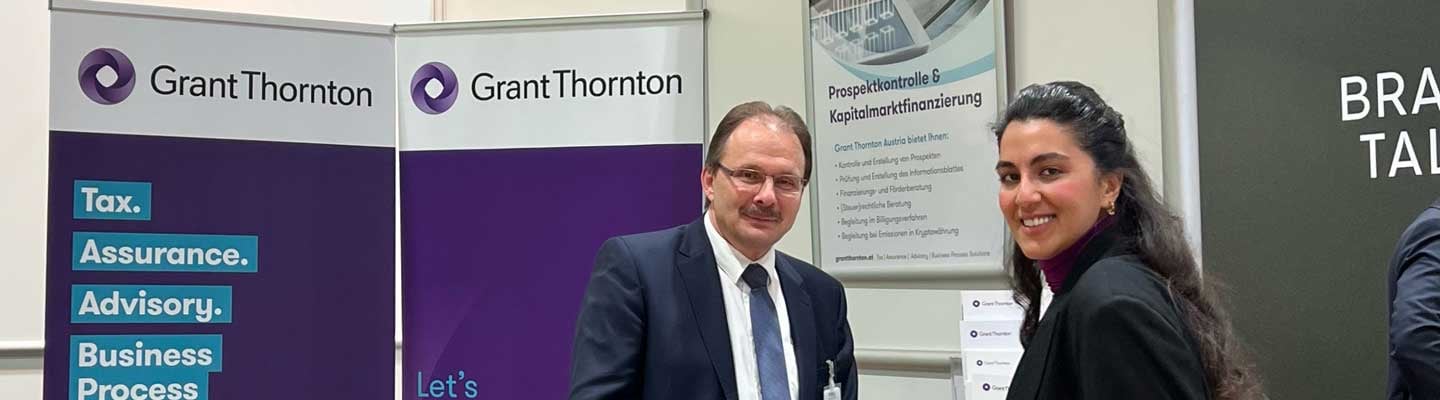 Auch in diesem Jahr zählte Grant Thornton Austria beim FONDS professionell Kongress in Wien zu den ausstellenden Unternehmen. Michael Szücs begrüßte gemeinsam mit Hannah Reumann und Hasret Güler die Besucher:innen am Stand 35. Interessiere Messe-Teilnehmer:innen konnten von unserem Experten Details zu unterschiedlichsten Themen, darunter die Prospektkontrolle und Kapitalmarktfinanzierung, erfahren.