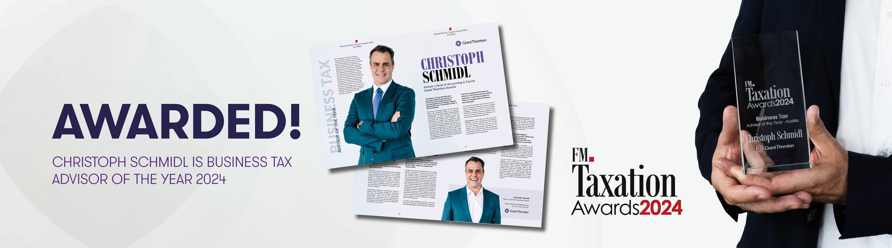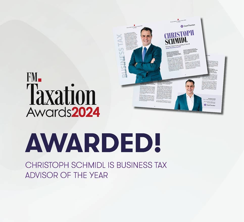 Wir freuen uns sehr, dass Christoph Schmidl, Partner bei Grant Thornton Austria, mit dem Titel „Business Tax Advisor of the Year“ 2024 ausgezeichnet wurde.
