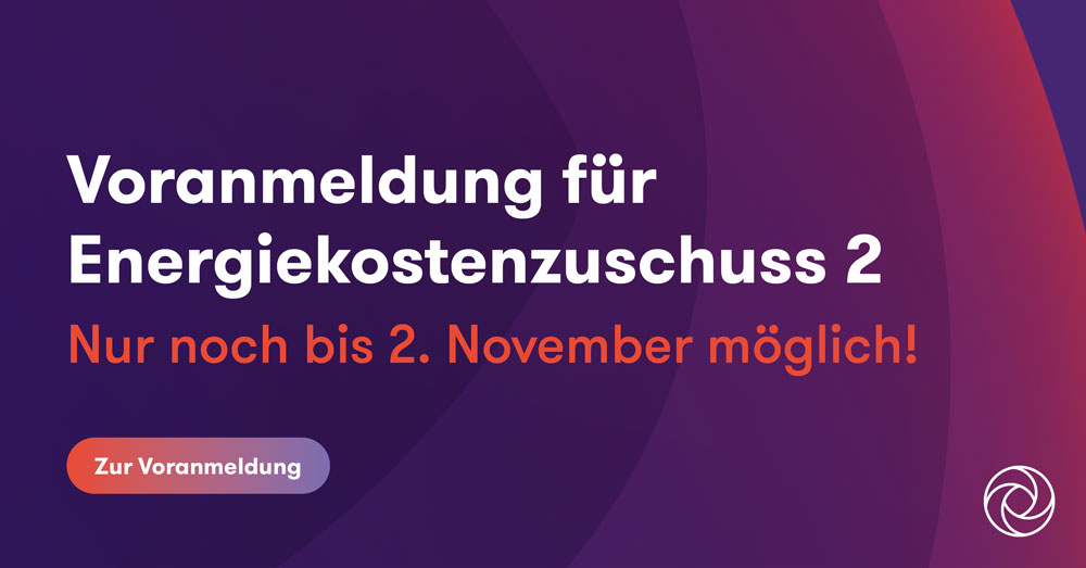 - Energiekostenzuschuss 2 | Voranmeldung bis Anfang November möglich
