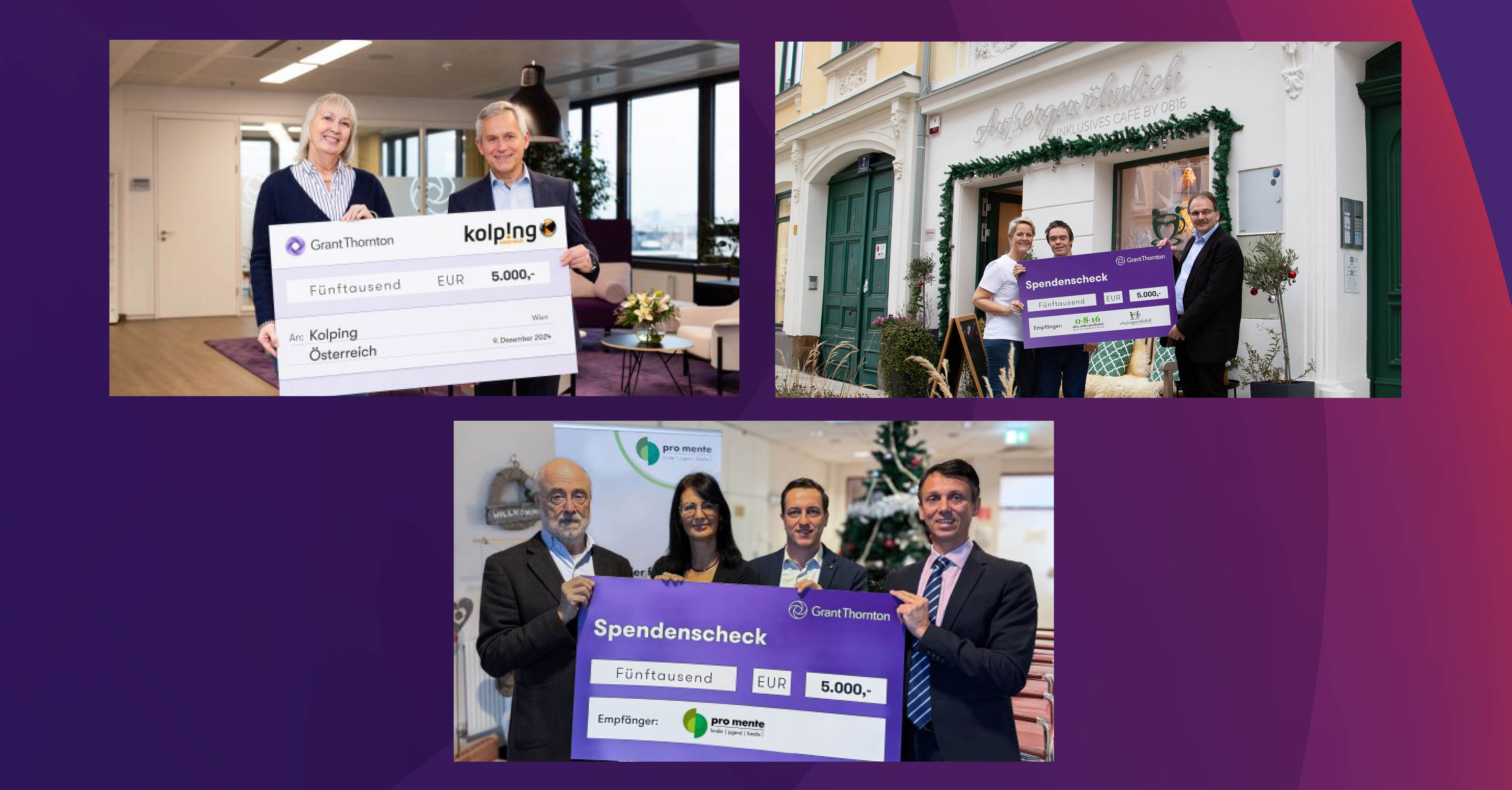 Zum Jahresende möchten wir Ihnen drei Vereine vorstellen, deren großartige Arbeit wir mit Stolz unterstützen: Kolping Österreich, pro mente: kinder jugend familie und 0⋅8⋅16 – alles, außer gewöhnlich. 💜
